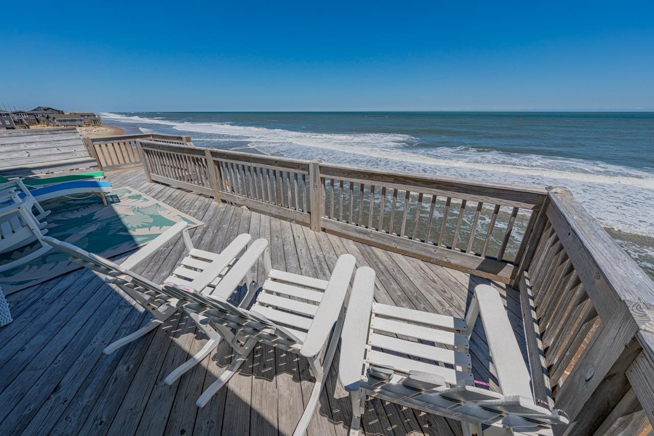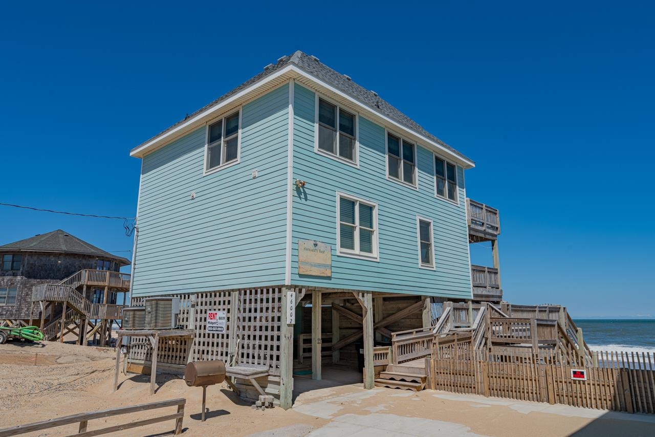 Experience the ultimate in oceanfront living with this exquisite property in Buxton with unparalleled ocean views from every level. Upon entering, you'll find three tastefully decorated bedrooms on the first level. The king en suite bedroom opens to a deck with a relaxing swing, perfect for soaking in the ocean vistas. A queen bedroom and a bedroom with two single beds share a full bathroom. This level provides the comfort and privacy needed for restful nights. Upstairs, the open living, dining, and kitchen area is bathed in natural light from the surrounding windows, framing the stunning ocean views. Step out onto the sundeck to enjoy the sea breeze and watch your loved ones on the beach. This level also includes a half bathroom for added convenience. A few steps up from the living area, the cozy loft provides extra space to unwind, with a queen sleep sofa, and more incredible views of the ocean. This property has seen significant upgrades, including a fortified roof installed in 2023, a new HVAC system in 2019, refreshed decks in 2016, and updated windows, siding, and doors in 2020. These updates ensure the home is well-maintained, energy-efficient, and built to last. Mermaid's Rest isn't just a beautiful home; it's also a proven income generator, producing over $73,000 in rental income in 2023 and already securing $68,000 for 2024. This makes it an excellent investment opportunity, with a history of steady rental income. Beyond the property, Buxton offers a range of local attractions. You can enjoy delicious ice cream, dine at nearby restaurants, visit the historic lighthouse, and have fun at the arcade. With shops and other amenities within walking or biking distance, you'll always find something to do in the area. Don't miss your chance to own a piece of paradise in Buxton. Schedule a visit today and experience Mermaid's Rest for yourself. This oceanfront gem awaits you with breathtaking views, modern upgrades, and consistent rental income.