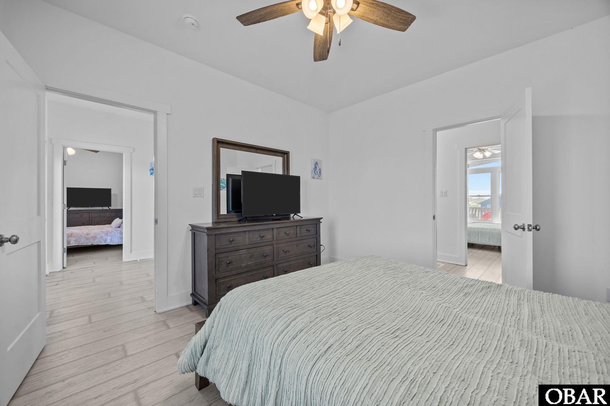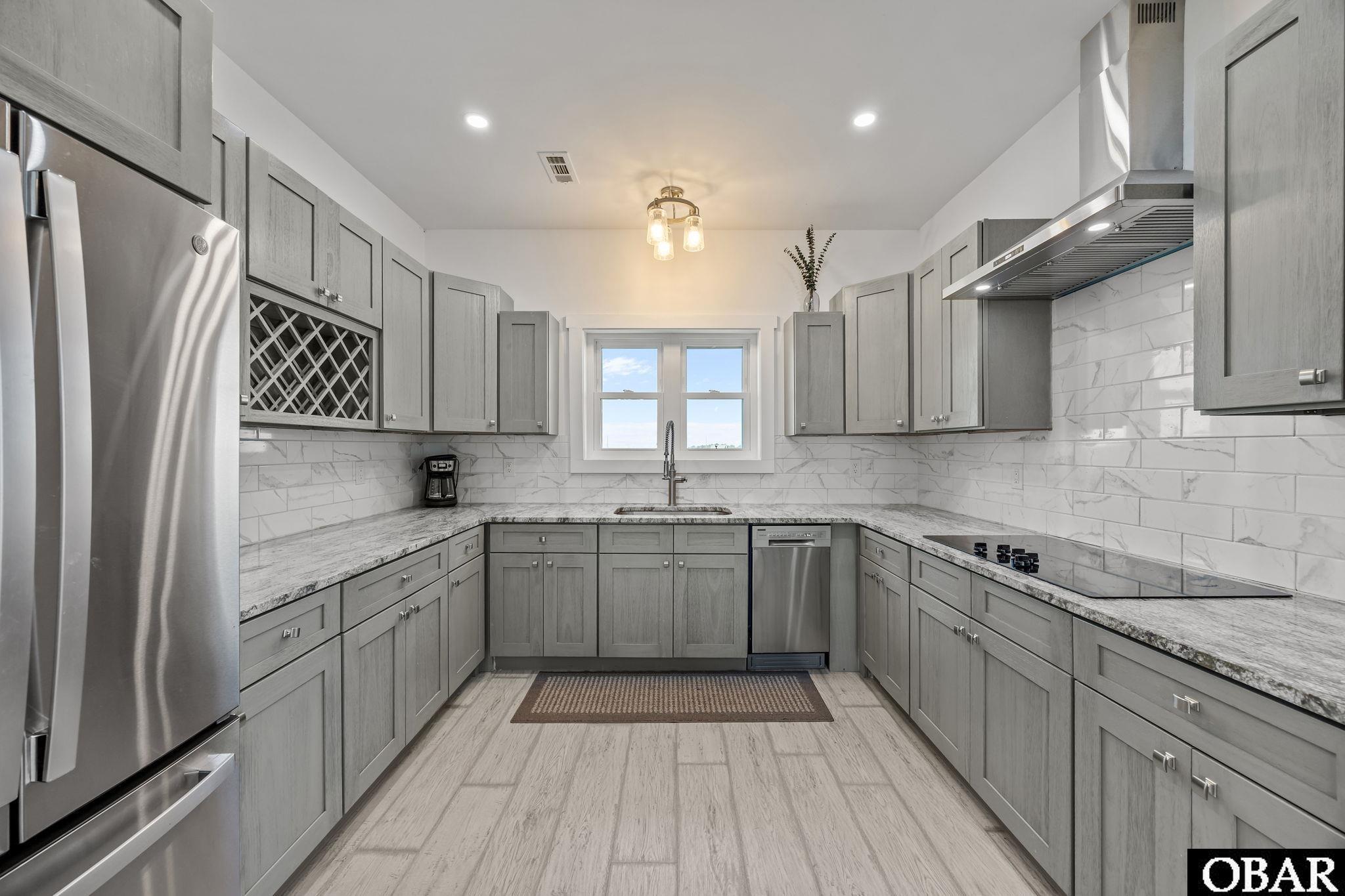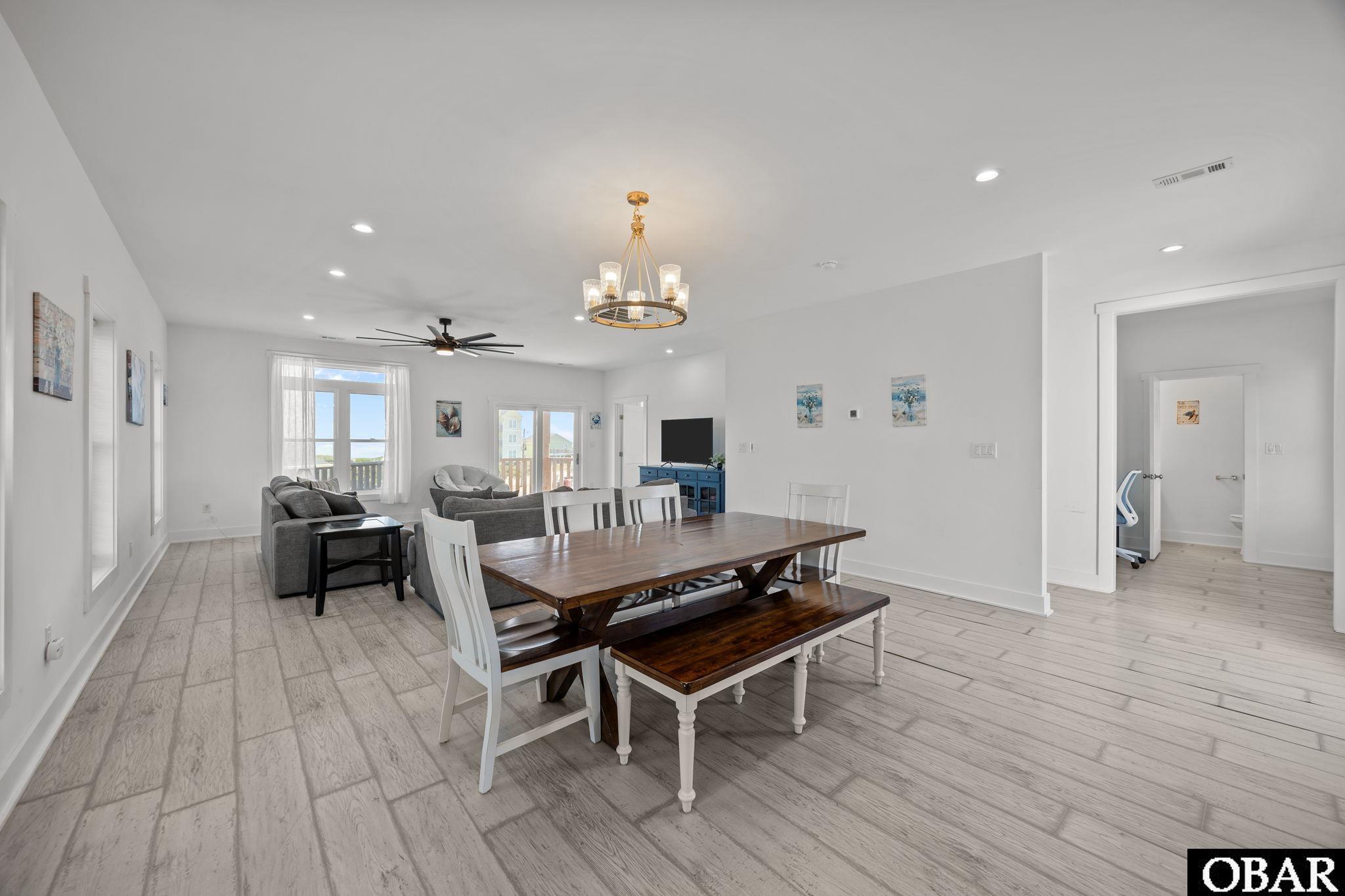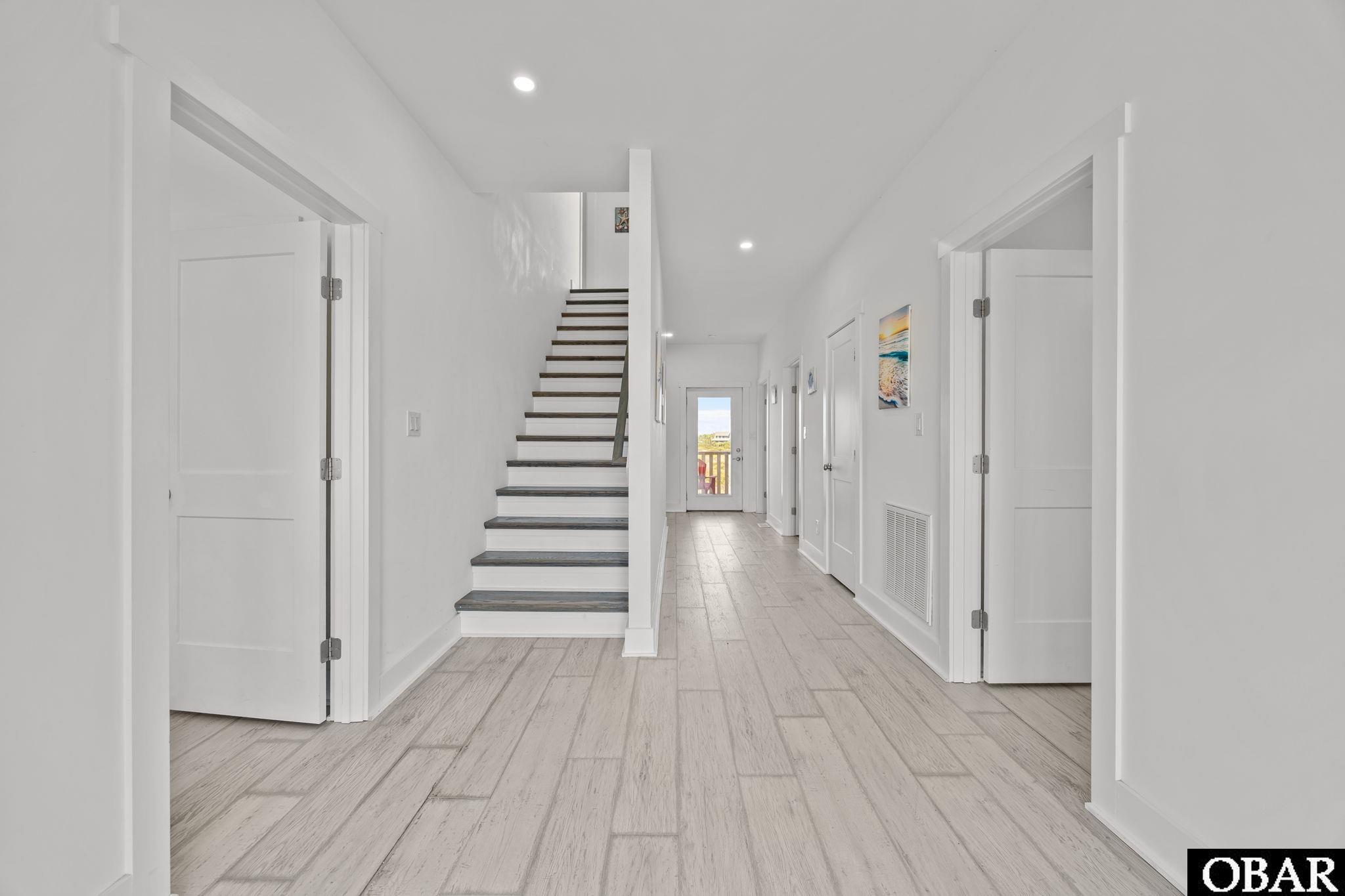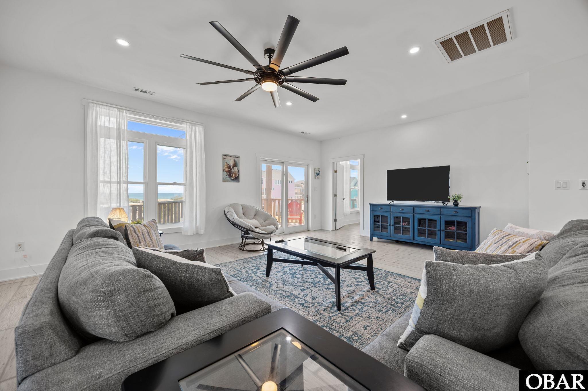 Just steps from the sand, this nearly new semi-oceanfront beauty built in 2024 brings all the charm of Rodanthe living with over 2,500 square feet of thoughtfully designed space. The ocean views start the moment you walk upstairs into the bright, open top level—sunny living and dining areas flow right into a gorgeous kitchen with stainless appliances and granite countertops. Slide out to the east-facing sun deck for your morning coffee and sunrise show, or wander to the west-side deck to catch those signature soundside sunsets. The spacious primary suite is also on this level, offering ocean views, a double vanity, and a tiled walk-in shower. A convenient half bath rounds out the floor. The mid-level features two generous en suites plus two more bedrooms connected by a shared tiled bath. All east-facing rooms enjoy those salty ocean views. Covered decks on both sides give you plenty of spots to relax, and the mid-level laundry makes life easy. Downstairs, you’ll love the covered deck with hot tub and outdoor shower, perfect after a day playing in the waves or wandering down to the Rodanthe Pier. With durable LVP flooring, clean modern finishes, and that “still feels new” shine, this home is an easy fit for anyone dreaming of coastal living. Just about 200 feet from the beach and close to local dining, watersports, and all the fun Rodanthe has to offer, this one is ready for you—whether you’re looking for a personal getaway or a standout rental investment.